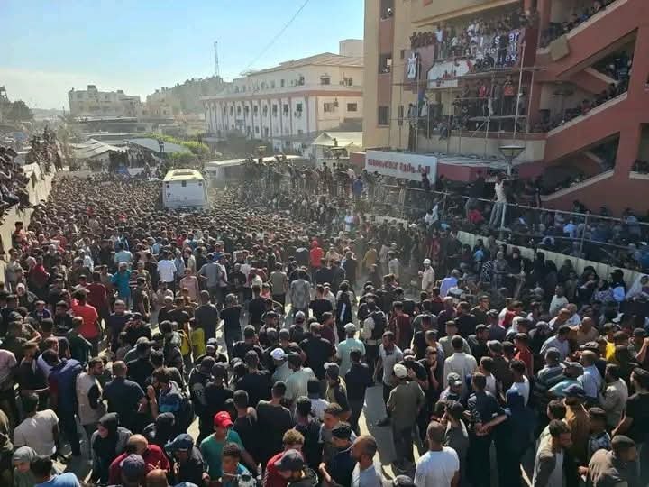 متابعات تاق برس استمرار وصول الأسرى الفلسطينيين المحررين بموجب صفقة التبادل بالأسرى الإسرائيليين إلى مجمع ناصر الطبي بخان يونس جنوبي قطاع غزة.