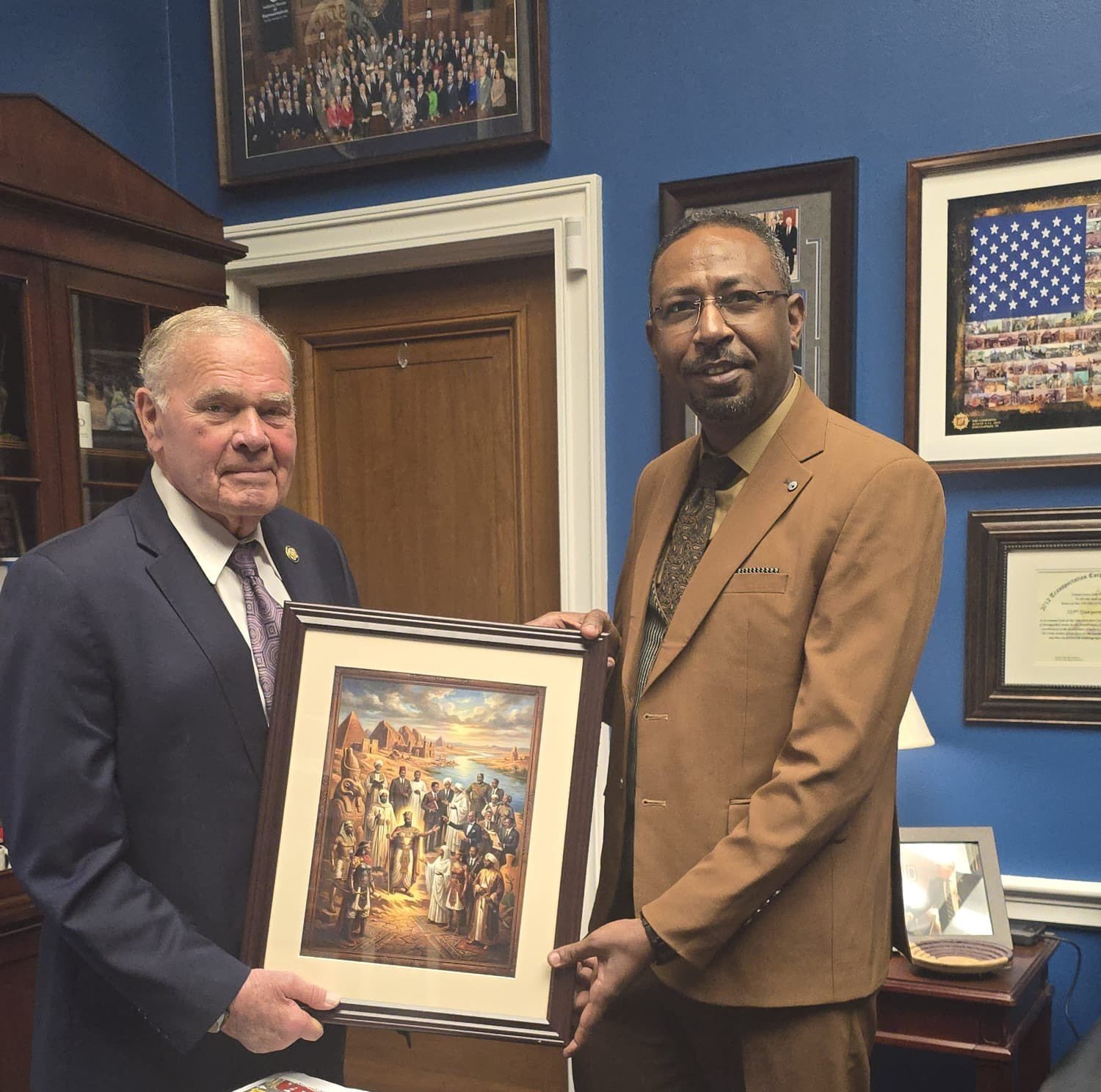 وقال فريد على أكس “إنه بحث في اليوم الثاني من زيارته إلى الولايات المتحدة، مع أعضاء رئيسيين في الكونغرس أبرزهم النائب جيم بيرد، تاريخ السودان والسودانيين والمعاناة الجسيمة التي ألحقتها ما اسماها ميليشيا قوات الدعم السريع المدعومة من الإمارات على السودان.