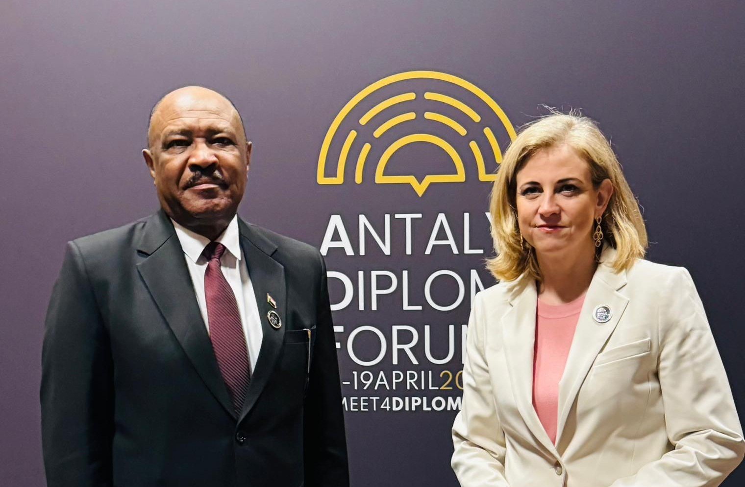 في الاثناء، التقى وزير الخارجية والتعاون الدولي، السفير محي الدين سالم، مع مبعوثة الاتحاد الأوروبي للقرن الإفريقي، أنيتا ويبر، على هامش مشاركته في أعمال منتدى أنطاليا الدبلوماسي.