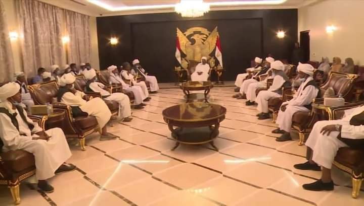 الخرطوم “تاق برس“ – إلتقى رئيس مجلس السيادة الفريق أول ركن عبدالفتاح البرهان، مساء السبت، بوفد المجلس الأعلى لنظارات البجا والعموديات المستقلة بقيادة رئيس المجلس الناظر سيد محمد الأمين ترك.