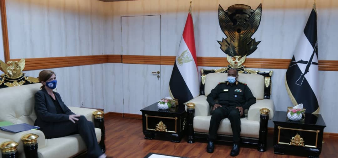 و التقى البرهان ليل الاحد سامنتا باور مديرة  الوكالة الامريكية للتنمية الدولية (المعونة الأمريكية)، عضو مجلس الامن الوطني الامريكي والوفد المرافق لها بحضور القائم بأعمال سفارة الولايات المتحدة بالخرطوم براين شوكان.