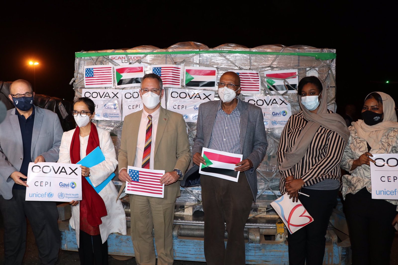وإستقبل عمر محمد النجيب وزير الصحة والقائم بالاعمال الامريكي برايان شوكان ومندوبين من منظمة اليونسيف ومنظمة الصحة العالمية بمطار الخرطوم وصول 606.700 ألف جرعة من لقاح كورونا الامريكي (جونسون آند جونسون) تبرعت به الولايات المتحدة الامريكية للسودان لمساعدته في محاربة الجائحة وتم التبرع عبر (آلية تقاسم الجرعات (كوفاكس).