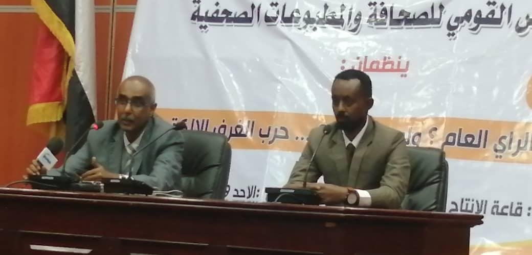 من جانبه أكد حسام الدين حيدر- الامين العام للمجلس القومي للصحافة والمطبوعات الصحفية ان المرحلة التي تمر بها البلاد تتطلب النشر المسؤول وتوخي الدقة والتزام المهنية.