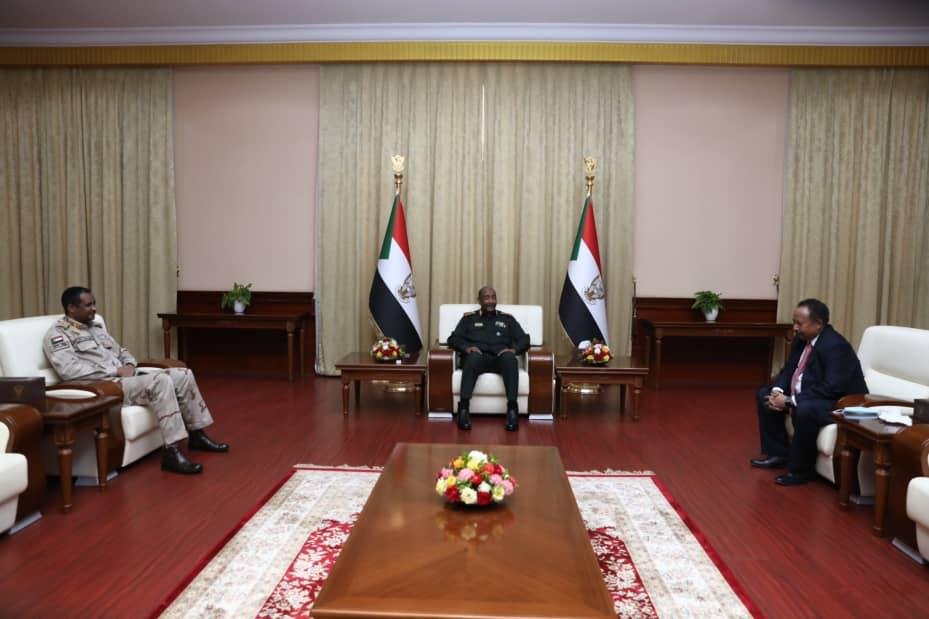 عاجل .. اول صور للقاء البرهان وحمدوك و حميدتي بالقصر الجمهوري