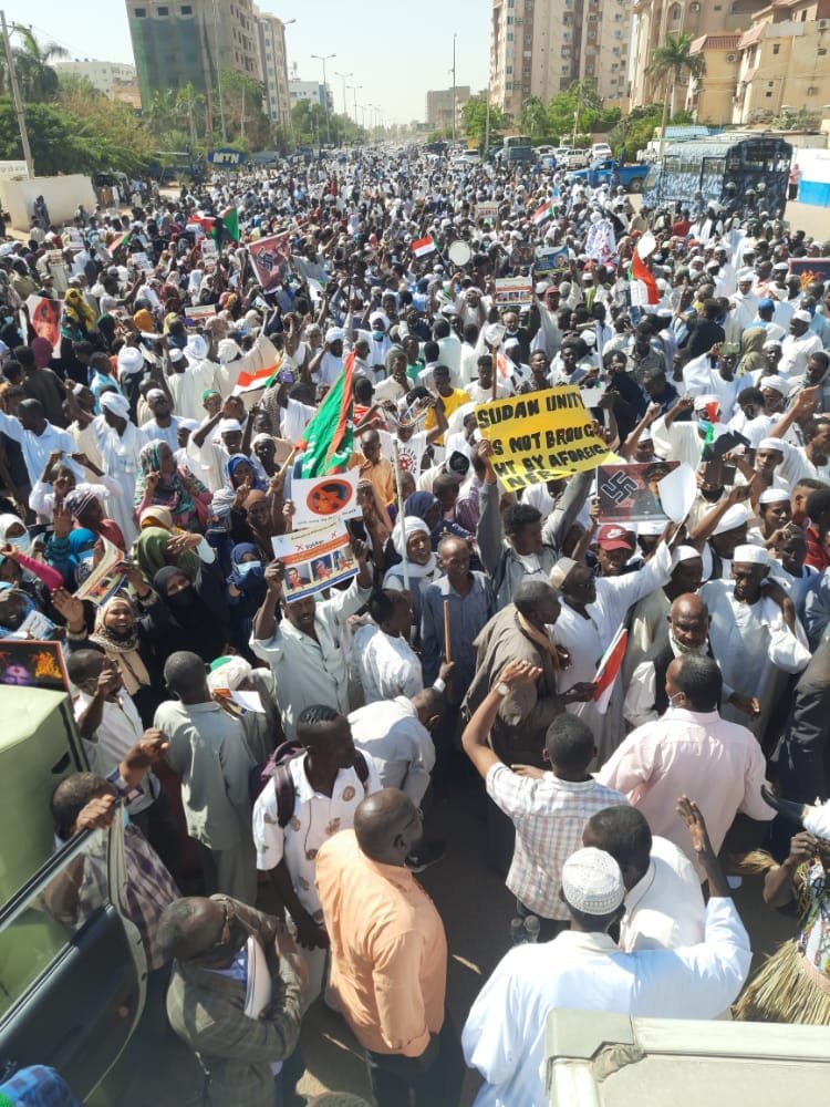 ونظم المئات من المتظاهرين اليوم مسيرة إلى مقر البعثة في شارع اوماك بالخرطوم، ونصبوا منصة امام مقر البعثة، وقال محمد البشير الكاشي عضو التنسيقية سودانيون من أجل السيادة، إن المسيرة رفعت مذكرة إلى الأمم المتحدة وطالبت منها ان تكف اياديها عن السودان، وأضاف “ترسل رسائل لمن يستجدون بالمستعمر”، وقال إن السودان ليس للبيع ، وأضاف “نقول للاستعمار الجديد ان السودان لن يكون الا للسودانيين، ولن يكون للسفارات والمخابرات التي تعمل ضد الوطن”.