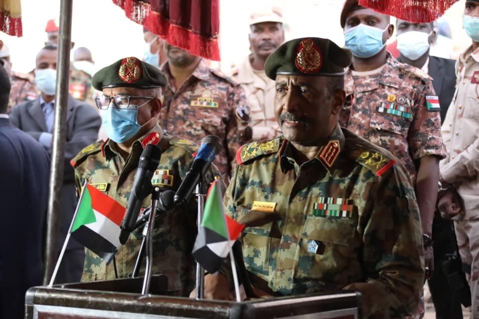 وشدد البرهان على ضرورة ان يُوجّه السلاح لحماية حدود الوطن وضمان عودة اللاجئين والنازحين الى قراهم في ظل الاضطراب الذي يشهده الإقليم.