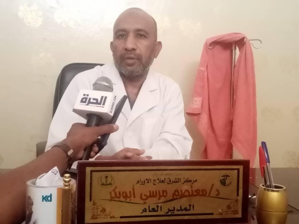 الخرطوم- تاق برس- كشف معتصم مرسي أبوبكر مدير عام مركز الشرق لعلاج الأورام بولاية القضارف شرق السودان، عن زيادة نسبة الاصابة بمرض السرطان بالولاية، وأشار إلى أن حالات التردد الشهري الجديدة و المشخصة، تراوحت ما بين (35- 40 ) شخصا خلال الربع الأول من العام الحالي.