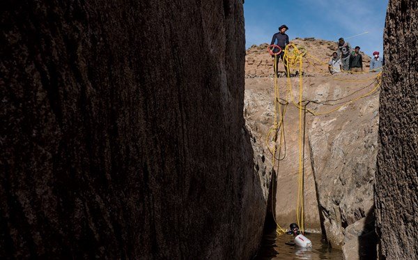 هنا، في مقبرة “نوري” القديمة بصحراء السودان الشمالية، دُفن أفراد العائلة الملكية “الكوشية” قبل آلاف السنين في سلسلة من حُجرات الدفن تحت الأرض أسفل أهرامات هائلة. والآن غرقت الحُجرات بالمياه الجوفية المتسربة من نهر النيل الذي يجري على مقربة من المكان. وبفضل تمويل أسهمت فيه “الجمعية الجغرافية الوطنية” الأميركية، قاد عالم الآثار “بيرس بول كريسمان” فريقًا أصبح أول من يحاول القيام بعملية استكشاف أثرية تحت الماء أسفل هرَم. في البداية، كنت هادئة، بل ومتحمسة لخوض التجربة وتصوير هذا المسعى الطموح المحفوف بالمخاطر في عام 2020. ولكني وبينما كنت أخطو خطواتي في أعماق الأرض، تسارعت دقات قلبي، وبالكاد استطعت أن أتنفس.